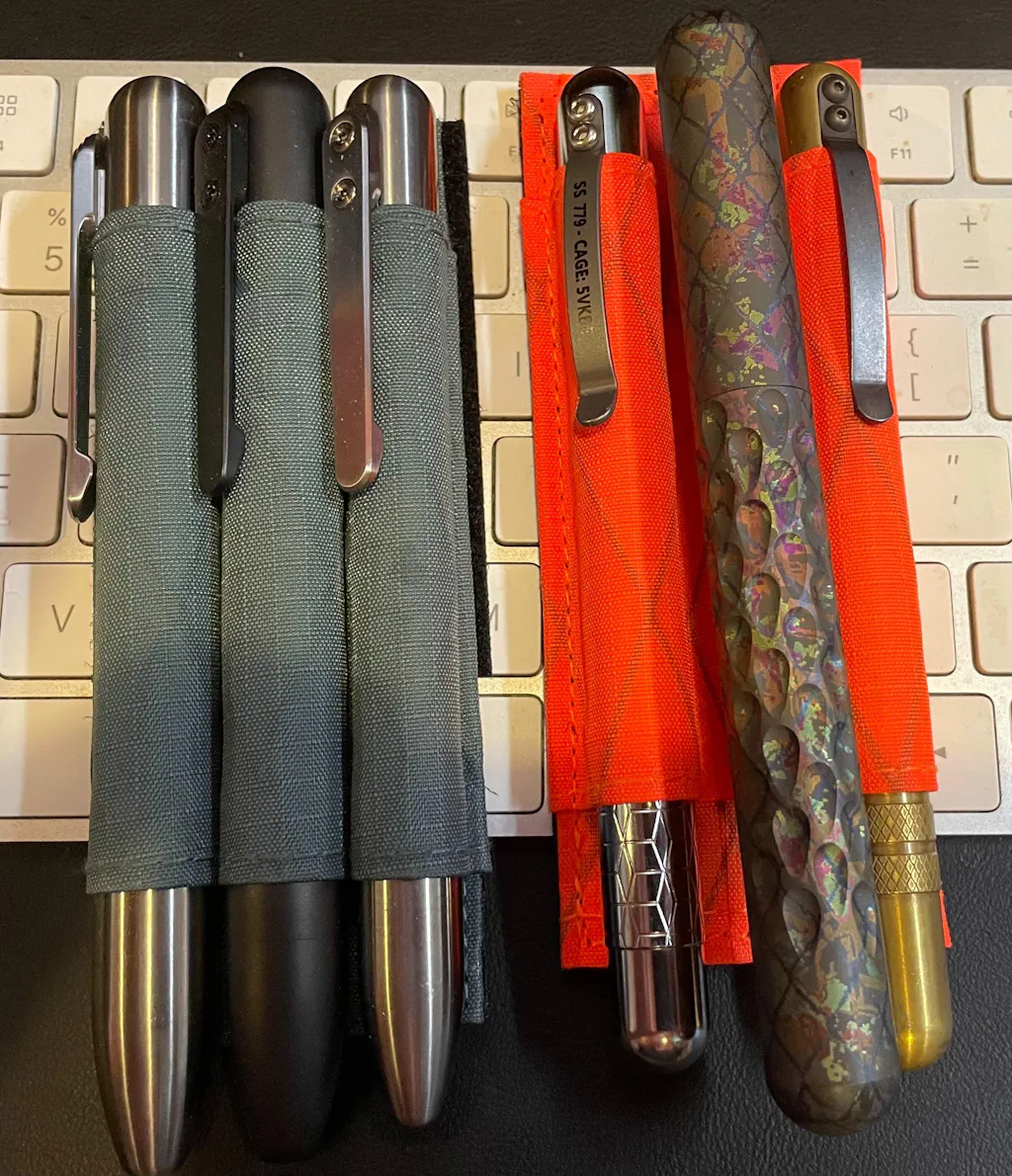 - Holds up to 3 pens up to .59" wide each ( perfect for an embassy pen, clipping on your favorite knife or even a flashlight )