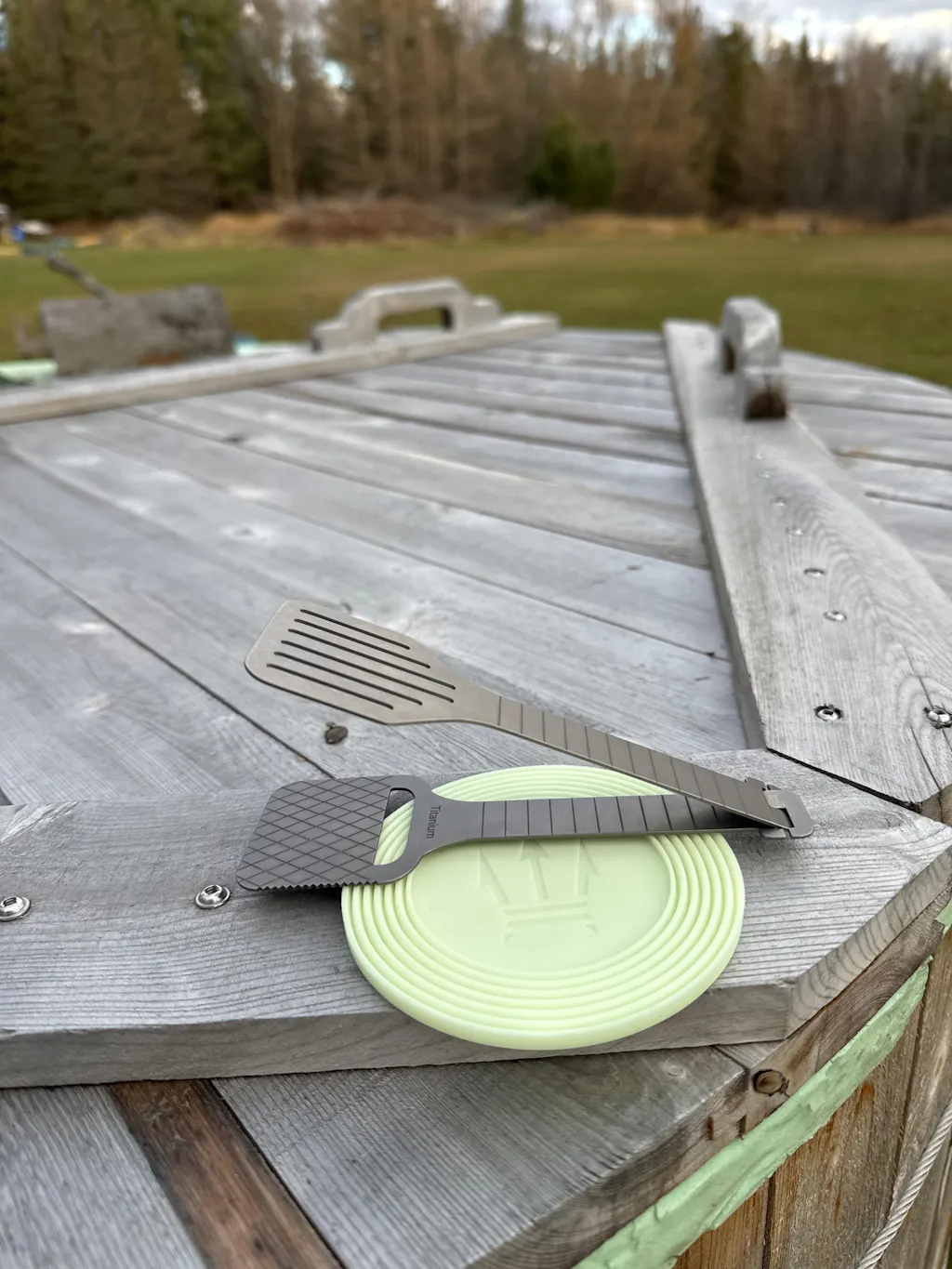 At only 1.35 ounces total, they’re practically weightless—ideal for the ultralight backpacker, overlander, or minimalist hiker who values gear that performs multiple functions without adding bulk. Whether you’re flipping pancakes on a camp stove, serving charcuterie lakeside, scraping a pan clean, or applying sauce with precision, this tool is ready.