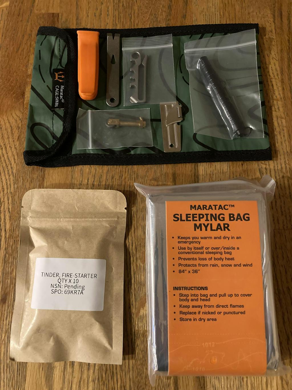I haven’t used the tinder fire starter or the sleeping bag yet, but everything else is solid. Love it. Put them to good use when i went camping. Would keep buying from countycomm for sure