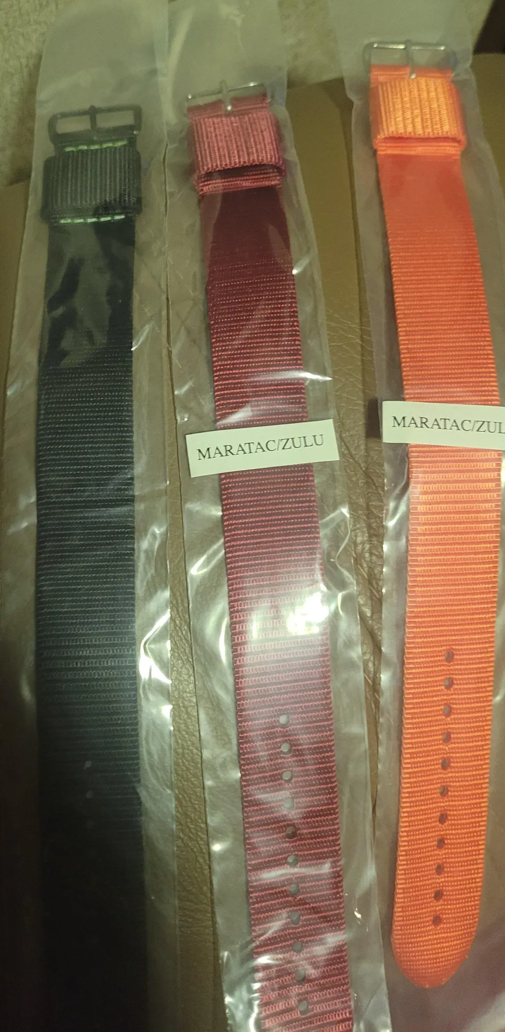I already have the green and yellow stripe Zulus from a previous grab bag — which is OK because I regularly wash and rotate my bands — but the maroon Mil Series was one I was kicking myself for not getting before they went out of stock. So, yes, please more grab bags! Also, would love to see more Maratac orange/black pattern bands. The striped one makes my SR-35 feel fully official. :D