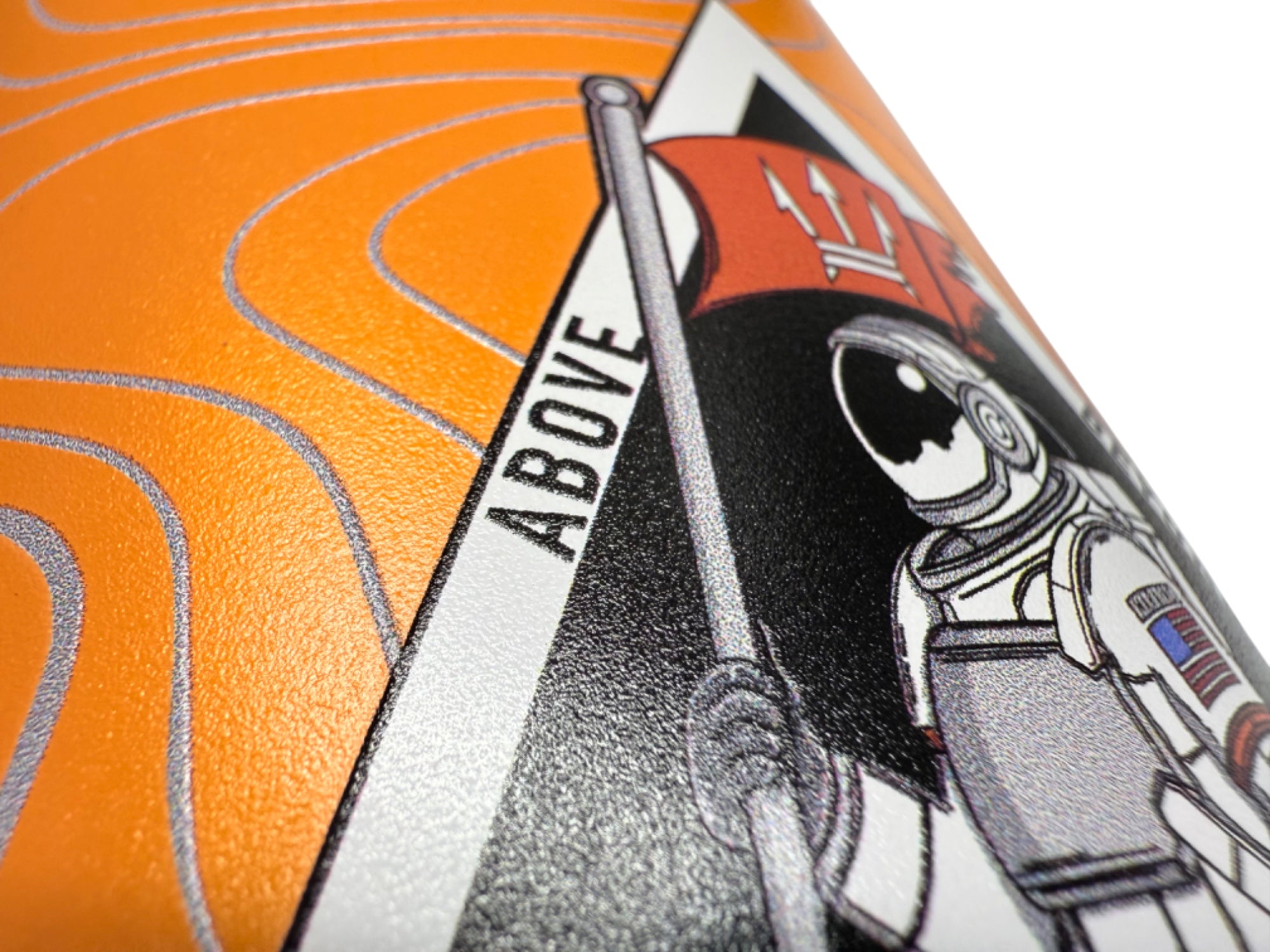 Weighing in at just 13 ounces and standing 8" tall, this tumbler is as rugged as it is lightweight, perfect for daily use or field deployment. The laser-etched design, painted after anodizing, creates an impressive 3D visual depth that stands out in both form and function.