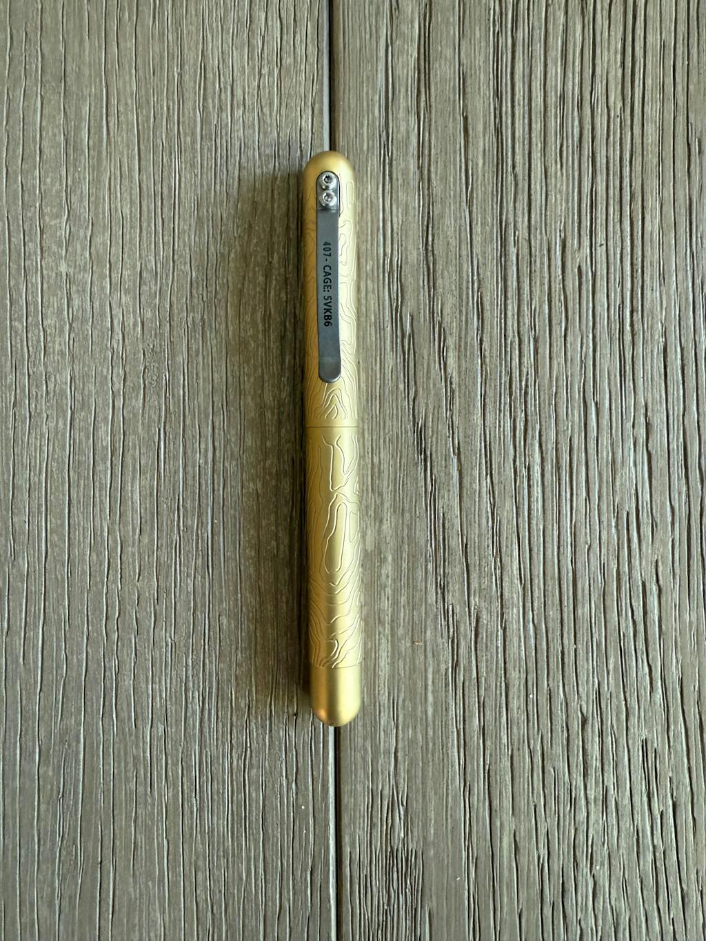 Welcome all pen collectors and all-purpose pen users. We are fortunate enough to offer the new Brass embassy pen after recently acquiring a small batch from a government contract. The pen is robust and made to last a lifetime; whether it's on the training field or in the office. A black medium spr4 pressurized fisher space pen refill, good from -30F to +250F is included. The machined deep knurled grip is made for non-slip use. The built in Grade 4 Titanium clip provides a secure fit in your pants or in your EDC bag.