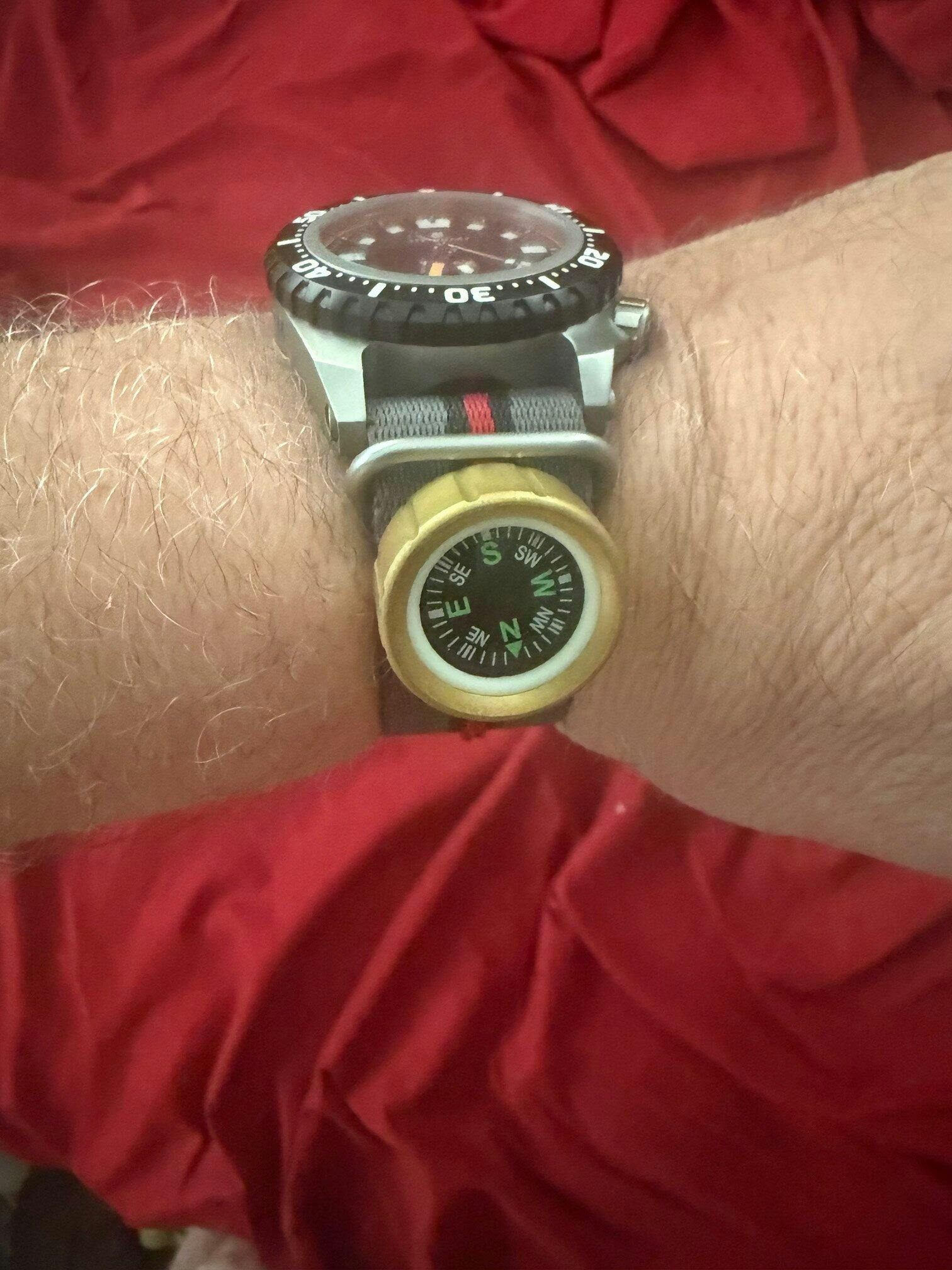 The Brass-Trail Wrist Compass is engineered for performance and reliability, easily attaching to any 18-22mm ( spacing is set to 22mm max without distorting the band shape ) watch band or worn independently with a Zulu strap. Its compact design and precision make it the perfect companion for any outdoor adventure.