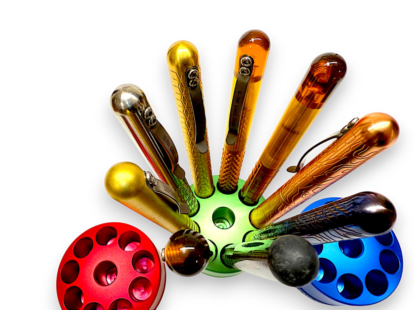 With 10 precision-cut slots 1/2" holes to fit embassy pens perfectly, this rotating carousel is designed to house your complete arsenal—from classic Embassy Pens to your latest additions.