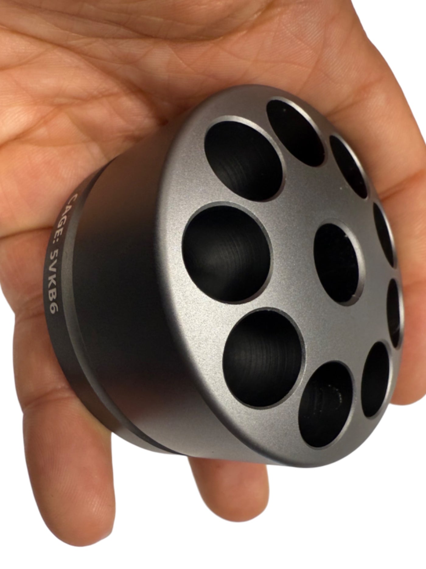 Feel the quality in hand with its solid 8 oz weight and compact footprint (2.5” wide x 1.6” tall). Perfectly balanced for your desktop, workbench, or war room.