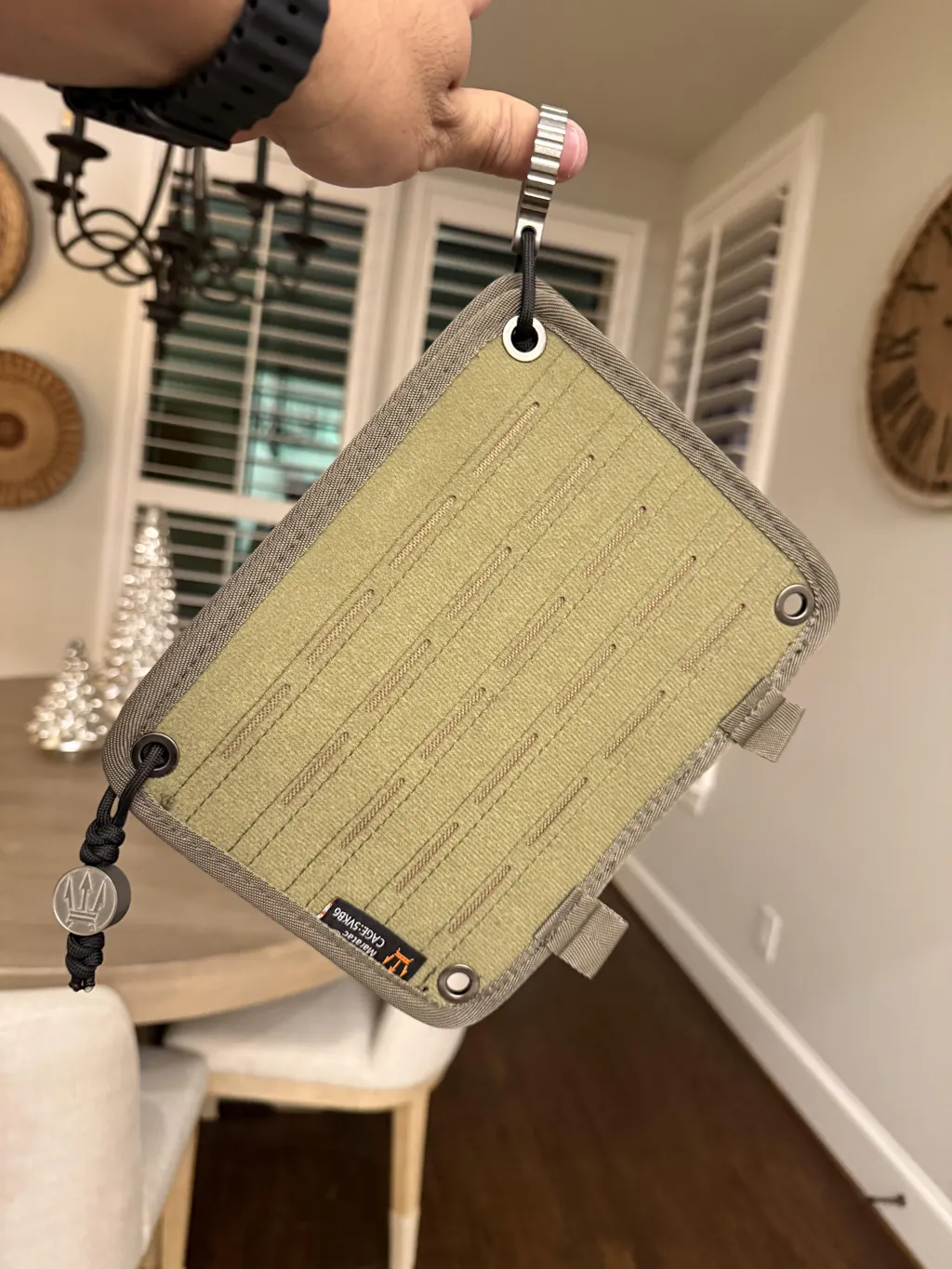 - Materials: Durable nylon inner wall, rugged bungee grip weave with integrated rubber stitching, and a secure hook backing.