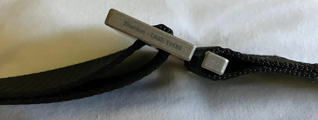 Titanium Buckle for Maximum Strength – Machined from Grade 4 Titanium, this buckle features an innovative 6-hook design for secure locking and rapid deployment.