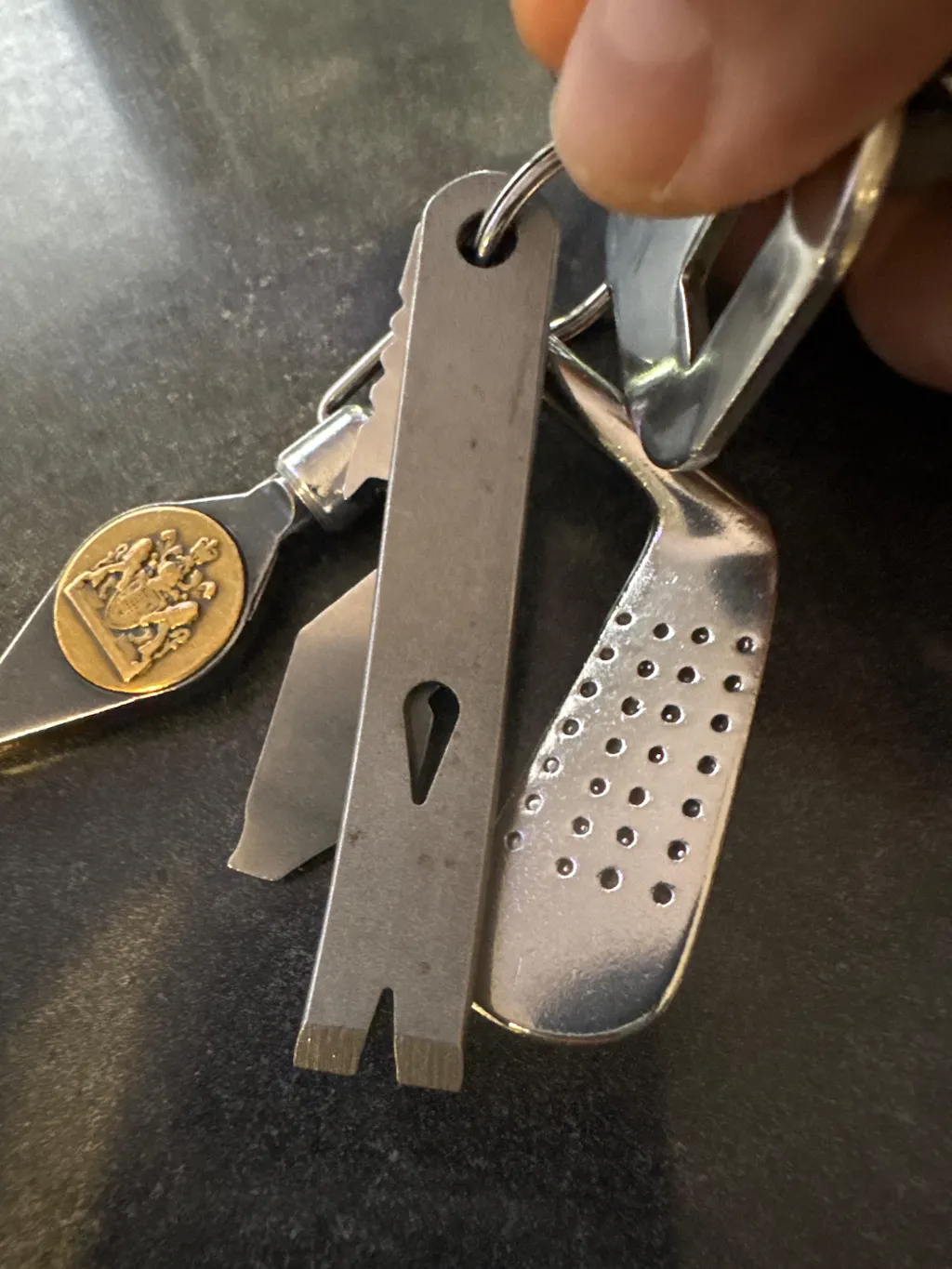 These things are very useful for opening packages and small boxes, &c. They fit on a key ring and are incredibly light, yet strong, due to the titanium used.